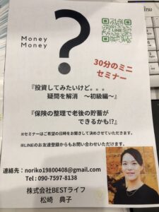 そのような中、30分のマネーセミナーを開催し皆様の疑問や不安を少しでも解消できたらと感じております。